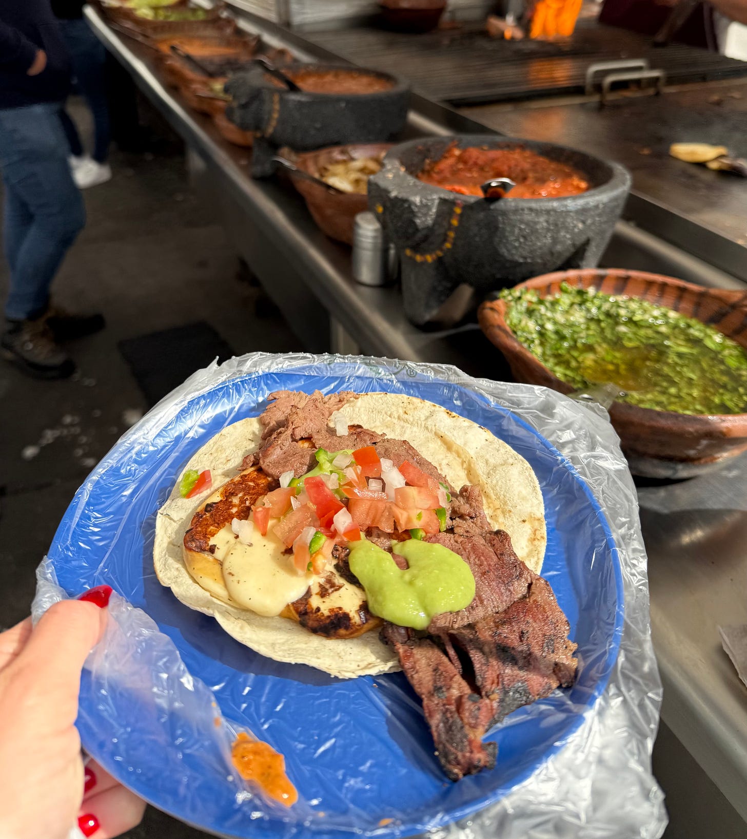 This taco from Los Provolones: they had me at the first sizzle of the cheese on the griddle.